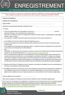 Les outils présentés ne sont ni exhaustifs, ni opposables. Les pharmaciens peuvent les ajuster en fonction de leur pratique, ou encore les compléter avec des outils que l'équipe aurait élaborés. Le meilleur outil restera celui qui est à la fois adapté à la pratique quotidienne et approuvé par l'ensemble de l'équipe. Une version modifiable des documents est disponible sur le site pour pouvoir les adapter à votre officine.
